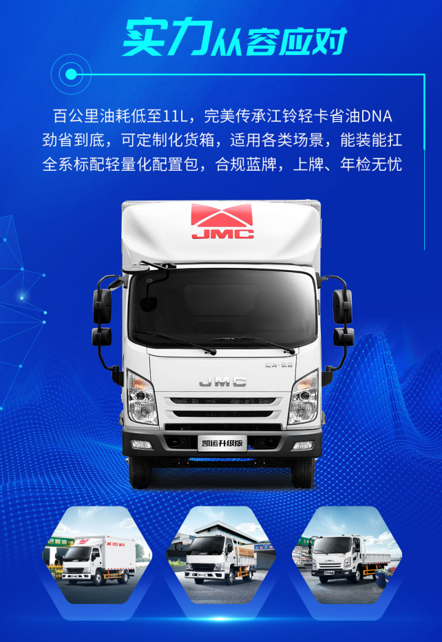 目前,江鈴輕卡騰豹2.5已經(jīng)在江鈴輕卡順威等系列車型進行搭載,此次,搭載江鈴輕卡騰豹新一代2.5L發(fā)動機4D25的輕卡車型,全系底盤采用了寶鋼高強度鋼結(jié)構(gòu),使車身的承載性能得到了更大的提升,可以拉更多的貨物了;同時,可選擇多種貨箱尺寸組合,更是方便了卡友們不同的需求選擇;還有可定制化貨箱,更是滿足了不同場景的用車需求,正是卡友們城配運輸?shù)目煽炕锇椤?/p>